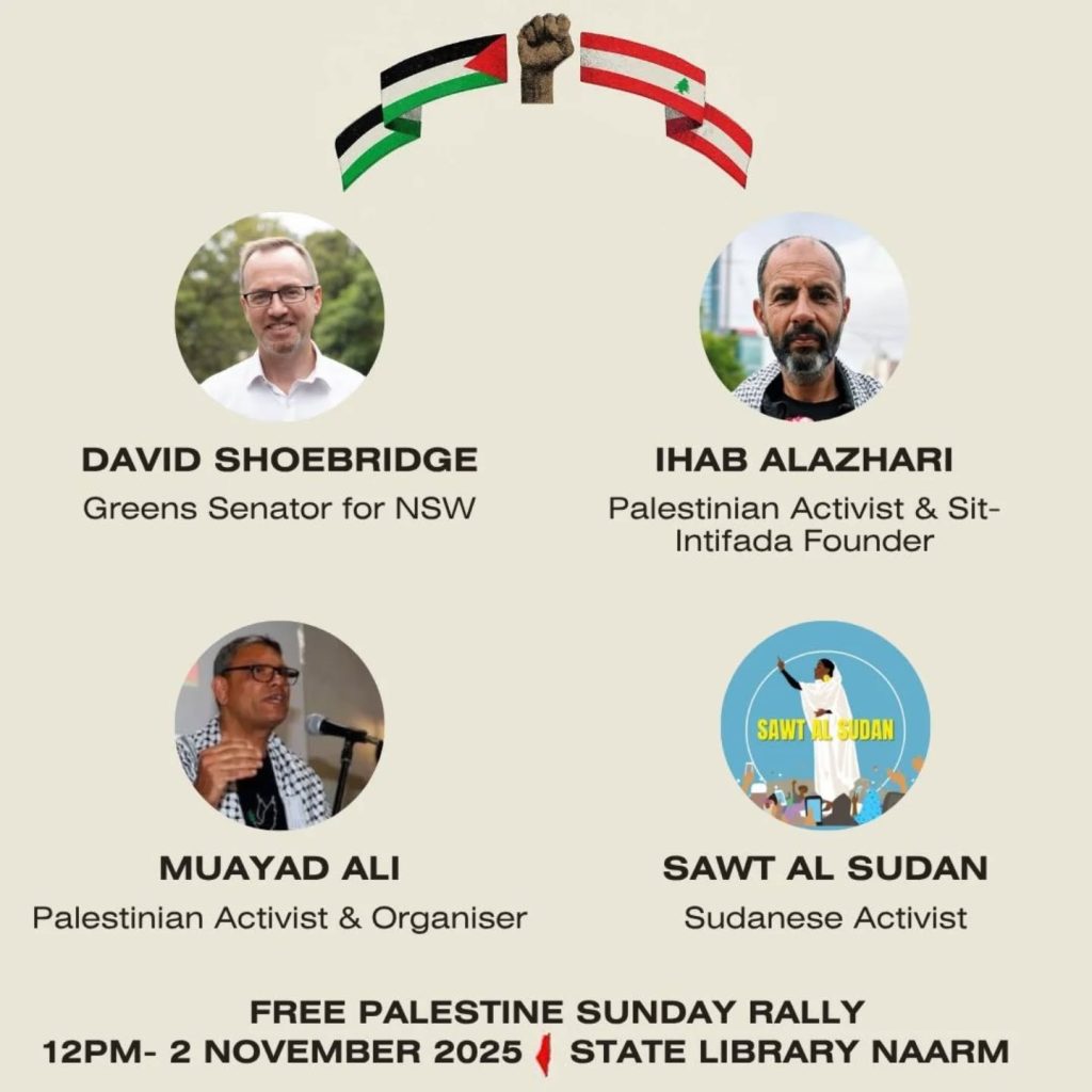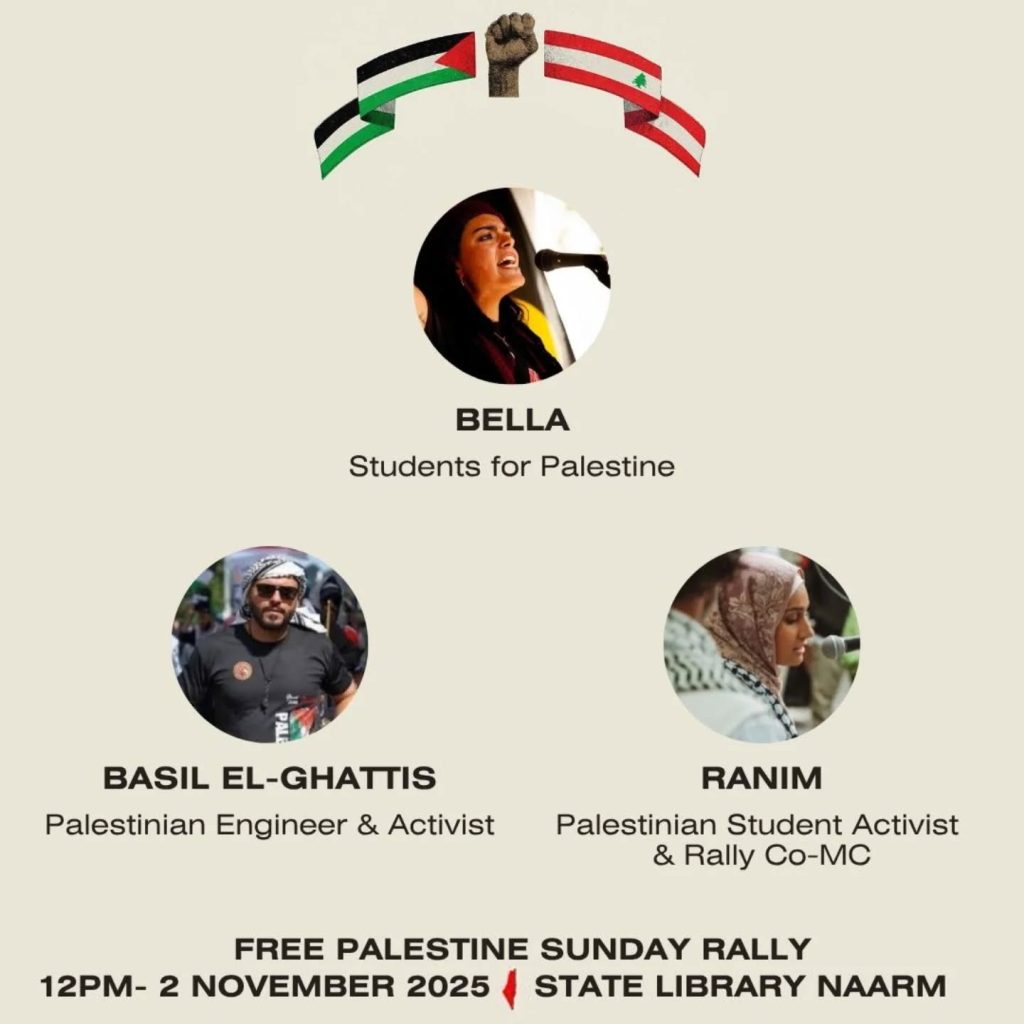 - Palestine National Day 2025Saturday 8 November, from midday, Federation Square, Melbourne – see you there!