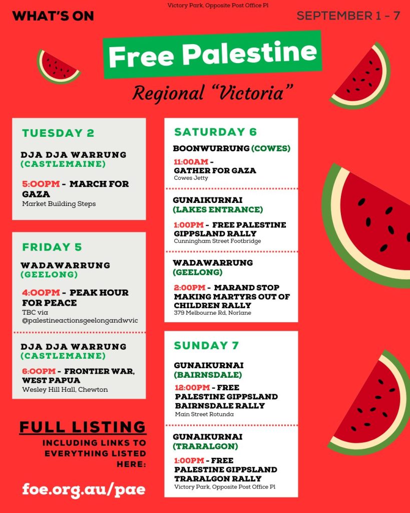 We offer our solidarity to all unionists in Victoria working toward imposing industrial bans on the production or trade in goods that aid or assist Israel in the commission of unlawful acts.